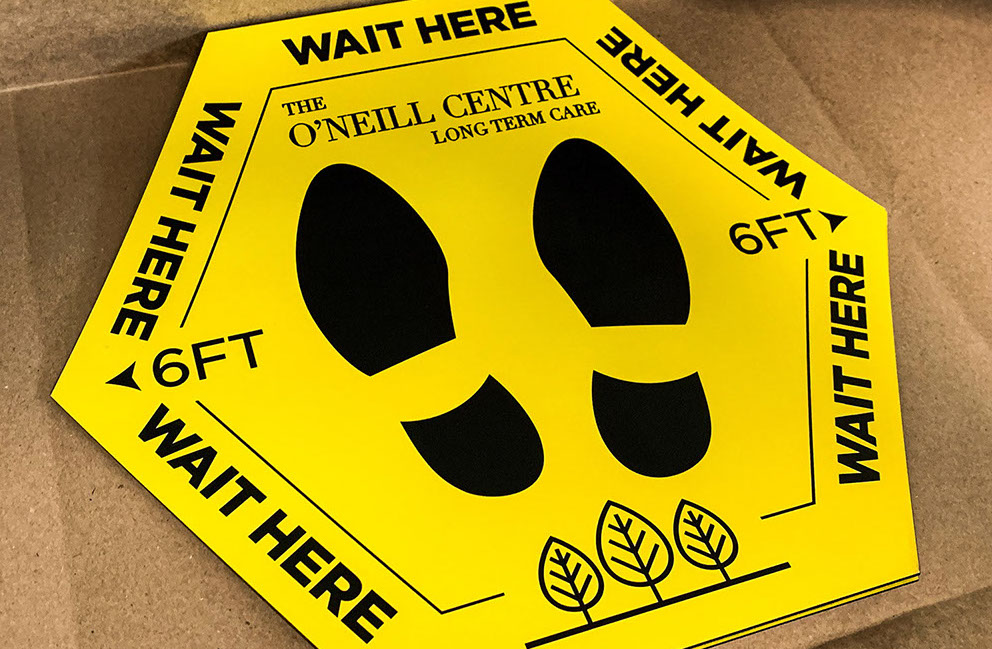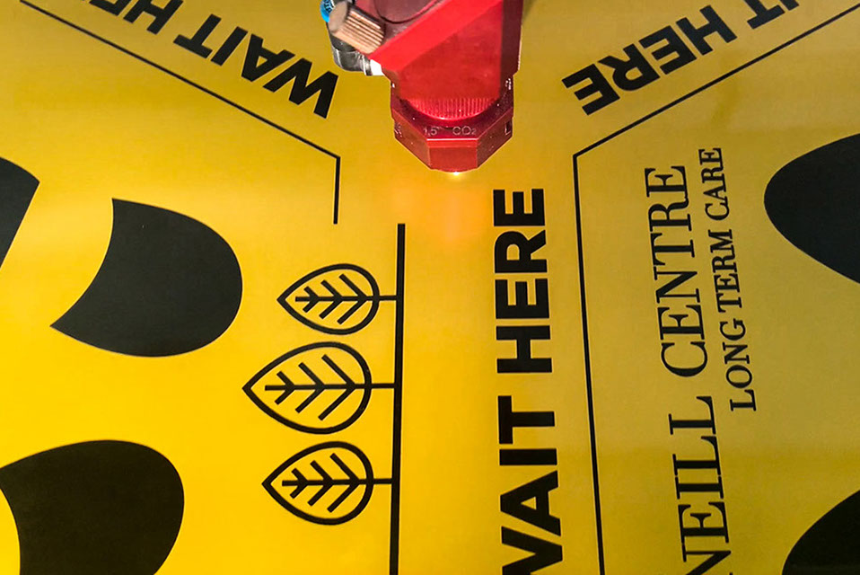PROJECT | O’Neill Centre Long Term Care | Floor Signage | Laser Engraving on UV-Resistant Acrylic-based Laminate